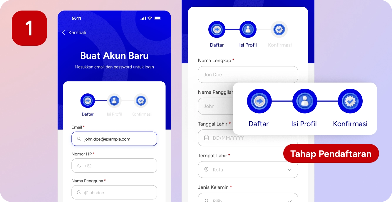 Mulai perjalanan Anda hanya dengan beberapa langkah mudah. Daftar dengan cepat, pilih lokasi desa atau kecamatan tempat tinggal, dan buat profil yang merepresentasikan diri Anda di komunitas lokal.